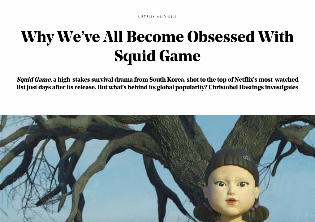 Despite my delicate constitution, Squid Game had me hooked from the word go. I found myself drawn in by the murderous premise, striking visuals and heart-wrenching performances, as well as the cliffhangers that baited me through nine episodes over one nail-biting weekend. Still, I couldn’t help but wonder why a dark, subtitled Korean-language drama that came out of nowhere had generated such insatiable fascination. I decided to find out.